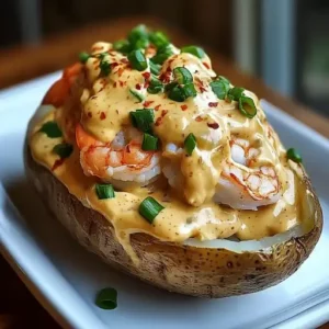 Description of this recipe: This Seafood Loaded Baked Potato with 3-Cheese Sauce is not just a meal; it’s an experience. …