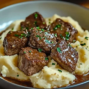 Description: Indulge in the ultimate comfort food experience with our Garlic Butter Beef Bites served atop a cloud of creamy …