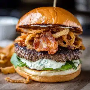 Description of this recipe: This isn’t just another burger; it’s an experience. The Bacon and Goat Cheese Aioli Burger with …