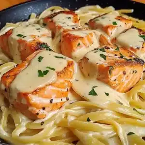 Description: Indulge in a symphony of flavors with this Creamy Garlic Butter Salmon Pasta. Tender, flaky salmon meets perfectly cooked …