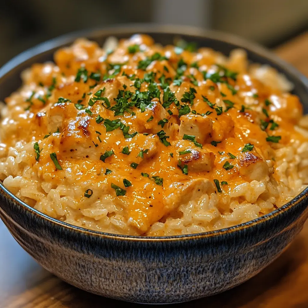 This Buffalo Chicken and Cheddar Rice dish combines the spicy, tangy flavor of buffalo chicken with creamy, melted cheddar cheese, all served on a bed of fluffy rice. It’s a crowd-pleasing one-pan meal that’s as hearty as it is delicious, perfect for weeknight dinners or game day parties.
