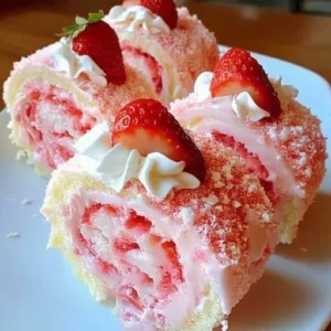 Description Fluffy vanilla sponge cake rolls filled with a creamy, dreamy cheesecake filling and bursting with fresh strawberries – a …
