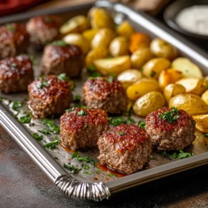 Description of this recipe:This delightful Sheet Pan Mini Meatloaf and Roasted Potatoes recipe combines the comforting flavors of classic meatloaf …