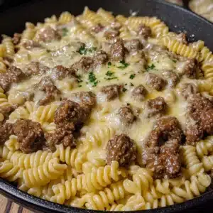 This delightful dish brings together the rich flavors of ground beef and rotini pasta, all enveloped in a creamy garlic …