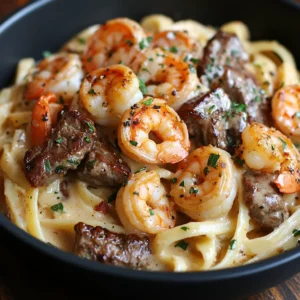 This Cajun Shrimp and Steak Alfredo Pasta is a delightful fusion of rich flavors, featuring tender strips of sirloin steak …