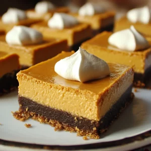 Description of this recipeThese Pumpkin Cheesecake Bars with Gingersnap Crust are a delightful twist on traditional cheesecake, combining the warm …
