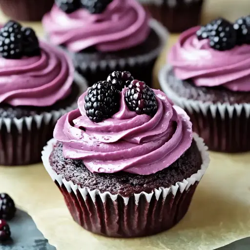 Description: These delectable chocolate cupcakes are moist, rich, and perfectly paired with a vibrant blackberry buttercream frosting. The tartness of the blackberries cuts through the sweetness of the chocolate, creating a delightful balance of flavors that will leave you craving more. These cupcakes are perfect for birthdays, special occasions, or simply a delicious afternoon treat.