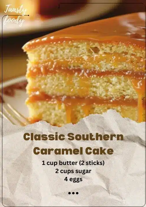 This Classic Southern Caramel Cake is a showstopper on its own, but it pairs beautifully with a scoop of vanilla ice cream or a dollop of whipped cream. Serve it alongside a cup of freshly brewed coffee or your favorite tea for a delightful dessert experience.