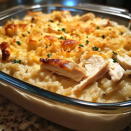 This Creamy Chicken and Rice Casserole is more than just a recipe; it’s a culinary hug. It’s a comforting, satisfying, and incredibly easy-to-make dish that’s perfect for any occasion. With its creamy texture, savory flavors, and crispy topping, it’s a guaranteed crowd-pleaser that will leave everyone wanting more. Whether you’re a seasoned cook or a beginner in the kitchen, this recipe is sure to become a staple in your repertoire. So, gather your ingredients, preheat your oven, and get ready to experience the ultimate comfort food! Enjoy!