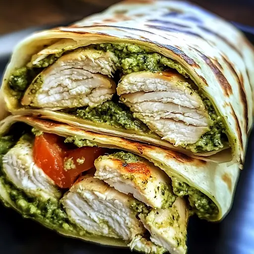 Step 11: Assemble the Creamy Pesto Chicken Wraps: