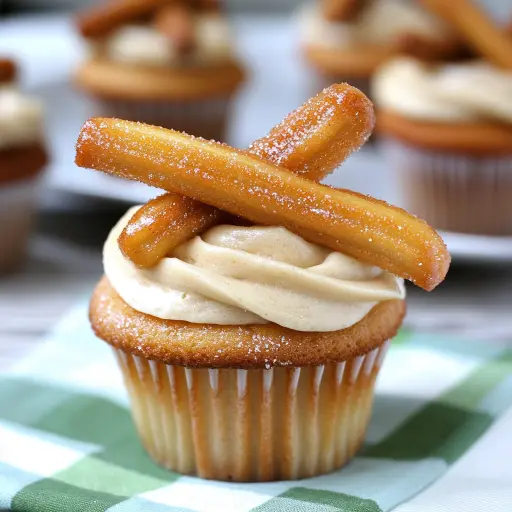 Step 9: If desired, top each cupcake with a mini churro or a sprinkle of cinnamon cereal for an extra touch of churro flavor and visual appeal. These are optional but highly recommended!