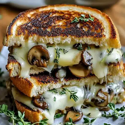 A savory twist on a classic comfort food, this Garlic Mushroom Grilled Cheese elevates the humble grilled cheese into a gourmet experience. Earthy mushrooms sautéed with fragrant garlic are nestled between layers of melted cheese and crisp, golden-brown bread. Perfect for a quick lunch, a satisfying snack, or a comforting dinner.