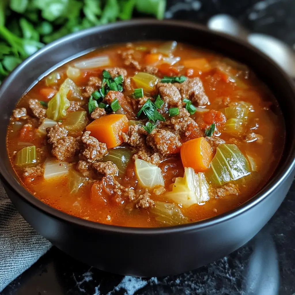 A comforting and hearty soup that’s perfect for chilly days! Packed with flavor, this dish is a cozy twist on classic cabbage rolls. The combination of tender cabbage, savory meat, and rich tomato broth makes every spoonful a delight, ensuring you feel nourished and satisfied.