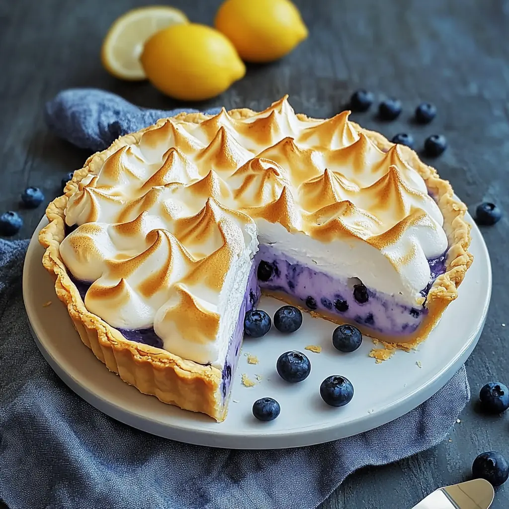 Why you will love this recipe: This pie is a symphony of flavors and textures that dances on your palate. The tangy lemon filling, infused with the sweet and slightly tart blueberries, creates a vibrant and refreshing taste. The creamy, smooth filling is perfectly complemented by the light and airy meringue topping, which adds a touch of sweetness and a delightful textural contrast. This recipe is not only delicious but also visually stunning, making it a showstopper for any gathering. The combination of bright colors and elegant design is sure to impress your guests. Whether you’re a seasoned baker or a novice in the kitchen, this recipe is surprisingly easy to follow. The steps are straightforward, and the result is a pie that tastes like it came from a professional bakery. Prepare to be amazed at how simple ingredients can come together to create such an extraordinary dessert. This pie is perfect for any occasion, from a casual family dinner to a sophisticated dinner party. Its unique flavor profile makes it a conversation starter and a guaranteed crowd-pleaser. Imagine serving this pie on a warm summer evening, watching your guests’ faces light up with delight. It’s more than just a dessert; it’s an experience.