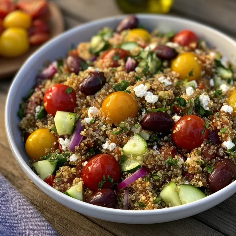 The Mediterranean Quinoa Salad is more than just a recipe; it’s a celebration of flavors and a testament to the versatility of simple, wholesome ingredients. This salad is a vibrant, nutritious, and utterly delicious dish that’s perfect for any occasion. Whether you’re a seasoned cook or a beginner in the kitchen, you’ll find this recipe easy to follow and incredibly rewarding. Its bright flavors, satisfying textures, and numerous health benefits make it a standout choice for anyone looking to add a touch of Mediterranean goodness to their diet. So, gather your ingredients, follow the simple steps, and prepare to be transported to the sunny shores of the Mediterranean with every bite of this delightful quinoa salad. Enjoy!