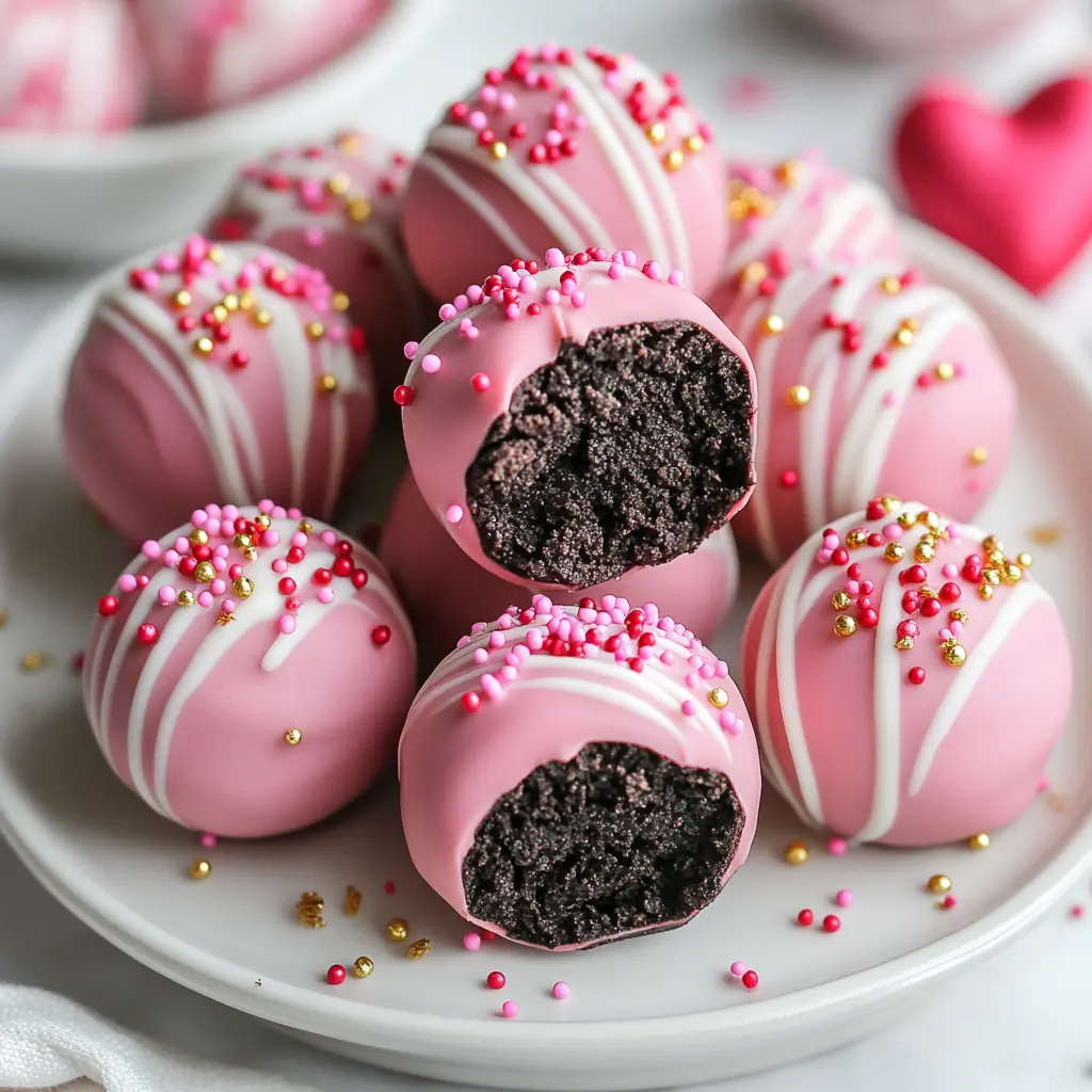 You will love this recipe because it combines the beloved flavors of Oreo cookies and cream cheese into a rich, decadent truffle that requires no baking! These truffles are incredibly simple to make, allowing you to whip them up in just a short amount of time. They are perfect for sharing with loved ones, and their festive appearance makes them an ideal treat for Valentine’s Day. Plus, they are versatile enough to be customized with different colors and toppings, making them suitable for any occasion.