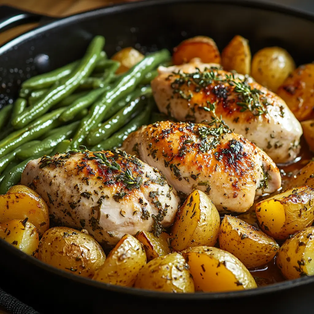 One-Pan Garlic Herb Chicken with Potatoes & Green Beans 🍗🥔🌿