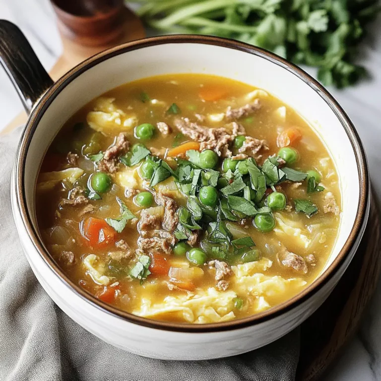 Description of this recipe: Paleo Egg Roll Soup is a delightful and healthy twist on the classic egg roll appetizer, transformed into a hearty and satisfying soup. This soup captures all the familiar flavors of an egg roll – savory ground pork, crunchy cabbage, fragrant ginger, and a hint of umami – in a warm and comforting broth. It’s a perfect meal for those following a paleo or AIP (Autoimmune Protocol) diet, or anyone looking for a delicious and nutritious soup option. Free from gluten, grains, and refined sugars, this soup doesn’t compromise on taste. It is packed with wholesome ingredients that will leave you feeling nourished and energized.