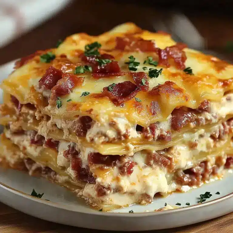 This Parmesan Garlic Bacon Lasagna is a decadent and flavorful twist on the classic Italian dish. It combines a rich meat sauce with a creamy, cheesy béchamel, crispy bacon, and plenty of garlic, all layered between perfectly cooked lasagna noodles. This lasagna is guaranteed to be a crowd-pleaser and a memorable meal.
