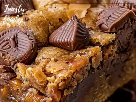 FAQs : 1. Can I use crunchy peanut butter instead of creamy in this recipe? – Yes, you can substitute crunchy peanut butter for creamy if you prefer some added texture in the bars. 2. Can I use mini chocolate chips instead of regular-sized ones? – Absolutely, mini chocolate chips can be used instead of regular-sized ones for a more evenly distributed chocolate flavor. 3. How can I prevent the bars from sticking to the pan? – Make sure to line the baking pan with foil and spray it with nonstick spray to prevent the bars from sticking. 4. Can I omit the peanut butter cups if I’m not a fan of them? – You can omit the peanut butter cups or substitute them with your favorite chocolate candies for a different flavor profile. 5. Can I freeze the bars for longer than a month? – While the bars are best consumed within a month for optimal freshness, they can be frozen for longer periods if stored properly in an airtight container to maintain their texture and flavor.