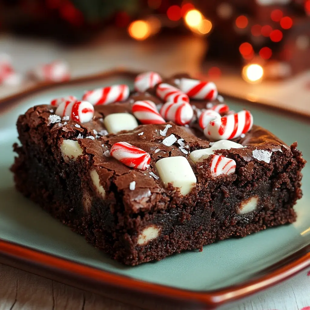 After baking, let the brownies cool in the pan for about 15 minutes. Once slightly cooled, lift them out using the parchment paper and place them on a cutting board. Cut into squares and, if desired, sprinkle with crushed peppermint candies for a festive touch!