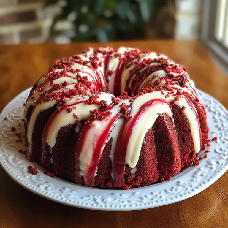 In conclusion, this Red Velvet Cream Cheese Bundt Cake is the ultimate dessert for both special occasions and everyday enjoyment. Its striking appearance and rich flavor are bound to please guests and family alike, making it a standout recipe to add to your baking repertoire. The moist texture and creamy filling paired with the simple glaze create a well-rounded dessert experience that many will love. Don’t forget to share some slices with friends—or keep it all to yourself!