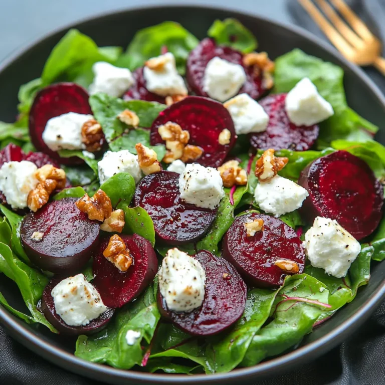 This Roasted Beet and Goat Cheese Salad can be served as a light lunch, a sophisticated appetizer, or a vibrant side dish. It pairs well with grilled chicken, fish, or steak. You can also add a scoop of quinoa or farro to make it a more substantial meal. For a vegetarian option, try serving it with grilled halloumi cheese or a fried egg. The bright colors and flavors of this salad make it a perfect addition to any potluck or gathering. It’s also a great way to impress your guests with your culinary skills without spending hours in the kitchen.