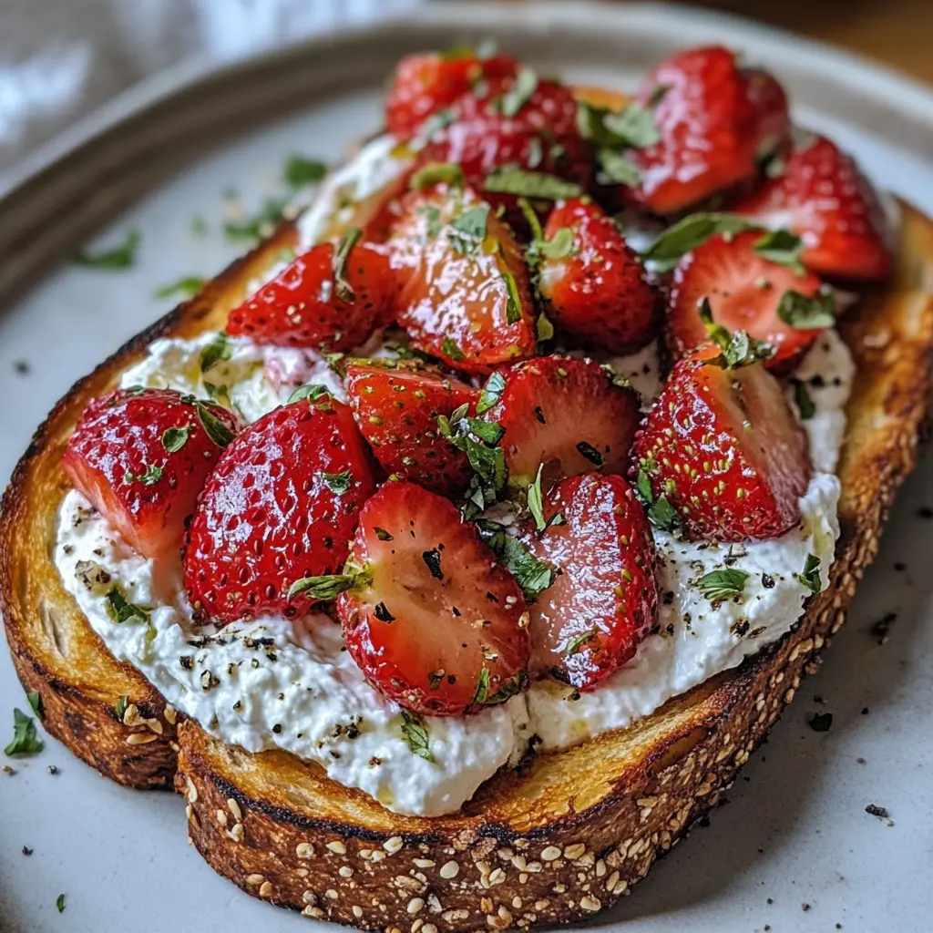 This Roasted Strawberry Whipped Ricotta Toast is a delightful combination of sweet, creamy, and savory flavors. It features luscious roasted strawberries that are caramelized to perfection, paired with a light and airy whipped ricotta spread on crusty toasted bread. This dish is perfect for breakfast, brunch, or as a sweet snack any time of the day.