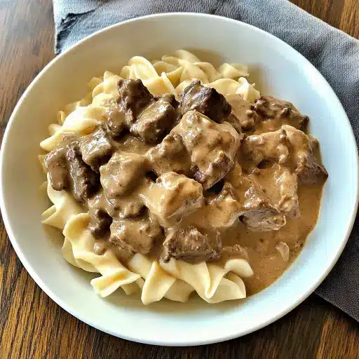 Description: Tender beef simmered to perfection in a creamy, flavorful mushroom sauce, all made effortlessly in your slow cooker. This recipe is a comforting classic reimagined for busy weeknights. Serve over egg noodles for a satisfying and hearty meal.