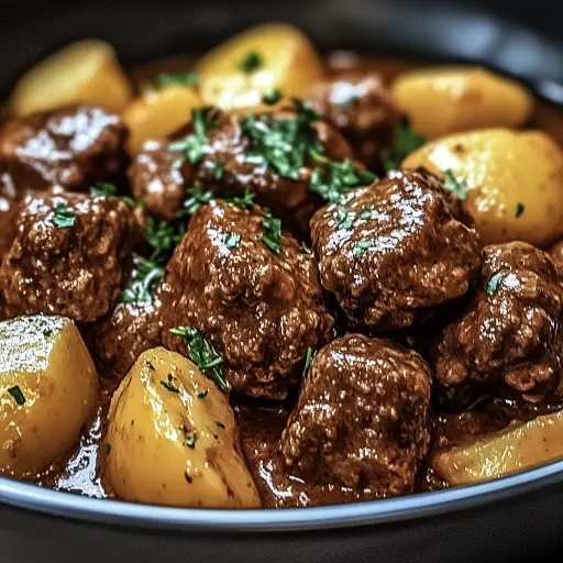 A comforting and flavorful one-pot meal featuring tender beef bites and perfectly cooked potatoes, infused with a rich garlic butter sauce. This slow cooker recipe is incredibly easy to prepare and delivers a satisfying, home-cooked experience every time.