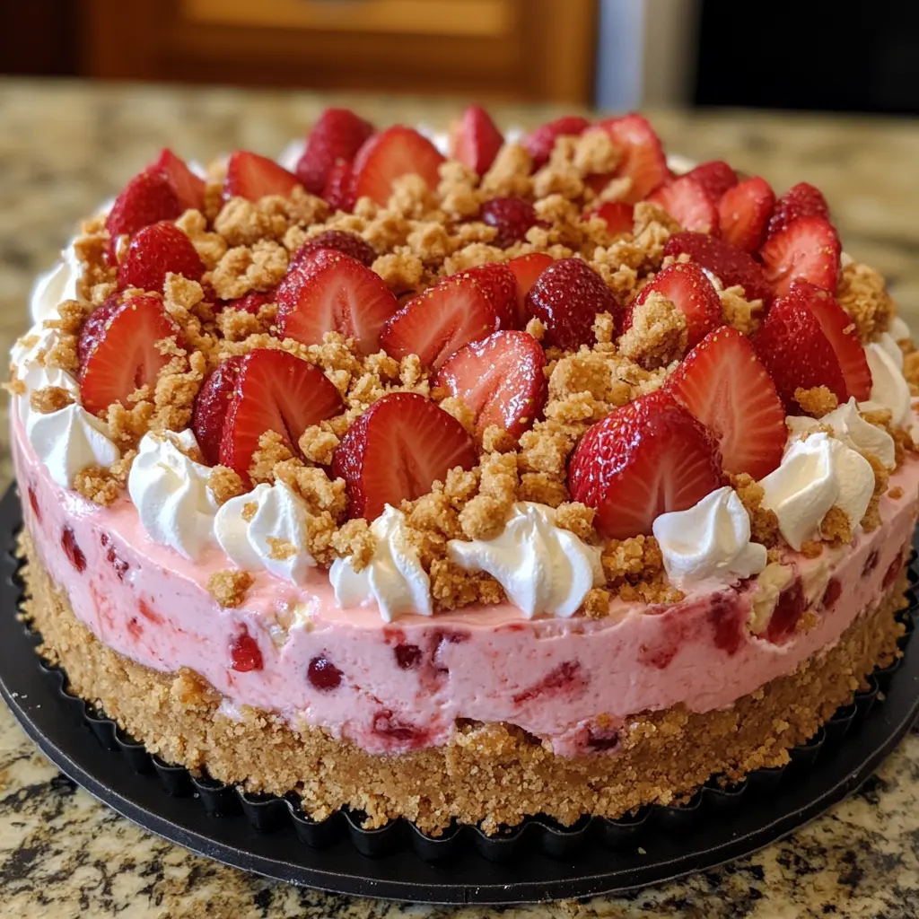 This delightful Strawberry Crunch Cheesecake is perfect for various occasions. Serve it as a show-stopping dessert at birthday parties, holiday gatherings, or summer barbecues. It pairs wonderfully with a dollop of whipped cream and a drizzle of strawberry sauce for an extra touch of elegance. Consider serving it alongside a refreshing iced tea or a glass of sparkling wine to complement the sweet and tangy flavors of the strawberries.