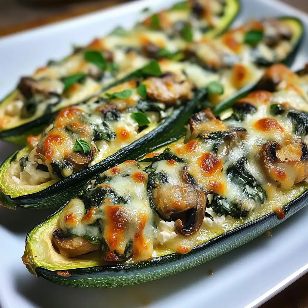 Step 7: Stuff the zucchini boats. Spoon the ricotta-spinach-mushroom mixture into the prepared zucchini boats, filling them generously. Pack the filling down slightly to ensure it stays in place during baking.