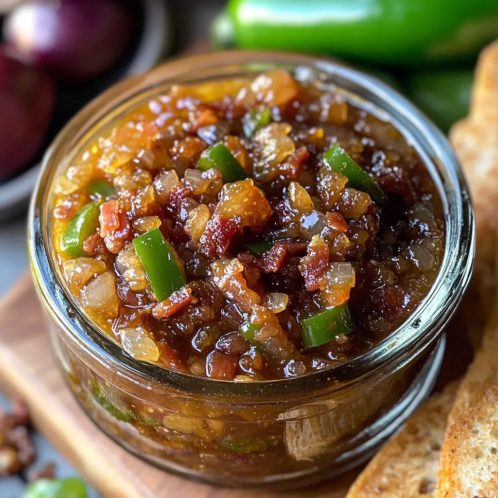Indulge in the ultimate savory sensation with this Sweet & Spicy Bacon Jam! This delicately balanced spread combines the rich flavors of crispy bacon with the sweetness of brown sugar and maple syrup, contrasted by a delightful heat from fresh jalapeños. Perfect for elevating any meal, this jam transforms ordinary dishes into extraordinary culinary experiences.