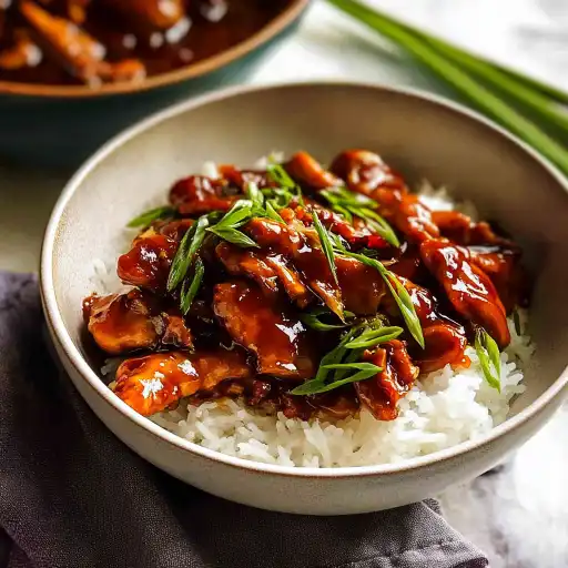 Step 5: Serve and Garnish Once the chicken is beautifully glazed and the sauce has thickened, remove it from the heat. Serve hot over jasmine rice or your choice of plain rice. Garnish with fresh coriander or cilantro and a sprinkle of red chili slices for an extra kick.