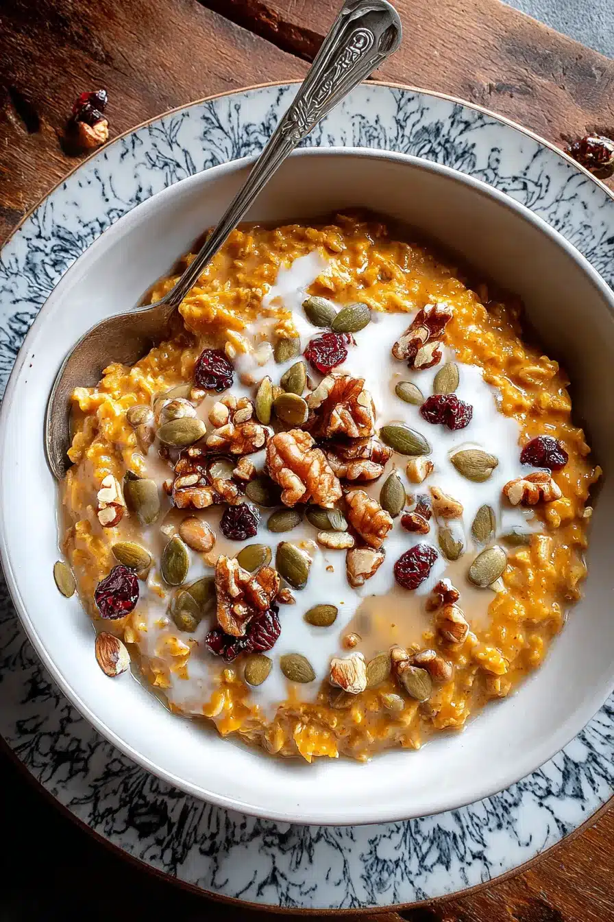 This Warm Spiced Pumpkin Oatmeal is incredibly versatile and can be enjoyed in a variety of ways. For a simple and classic serving, top it with a sprinkle of chopped nuts, such as walnuts or pecans, for added crunch and flavor. A handful of dried cranberries adds a touch of sweetness and a pop of color. Pumpkin seeds provide a satisfying crunch and a boost of nutrients.